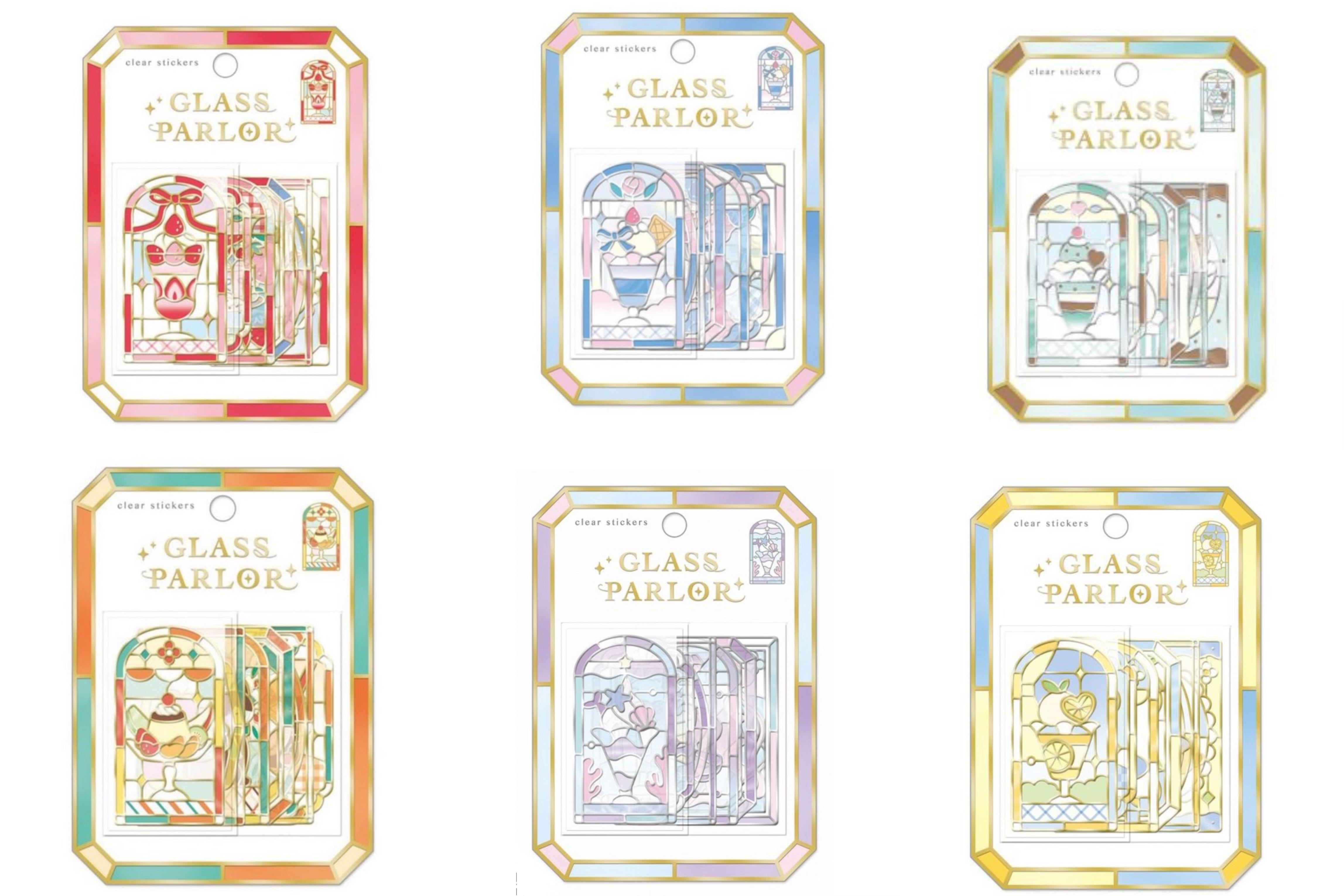 グラスパーラーステッカー (ソーダパフェ,マーメイドパフェ,ハニーレモンパフェ,ストロベリーパフェ,チョコミントパフェ,プリンアラモード) 6種セット