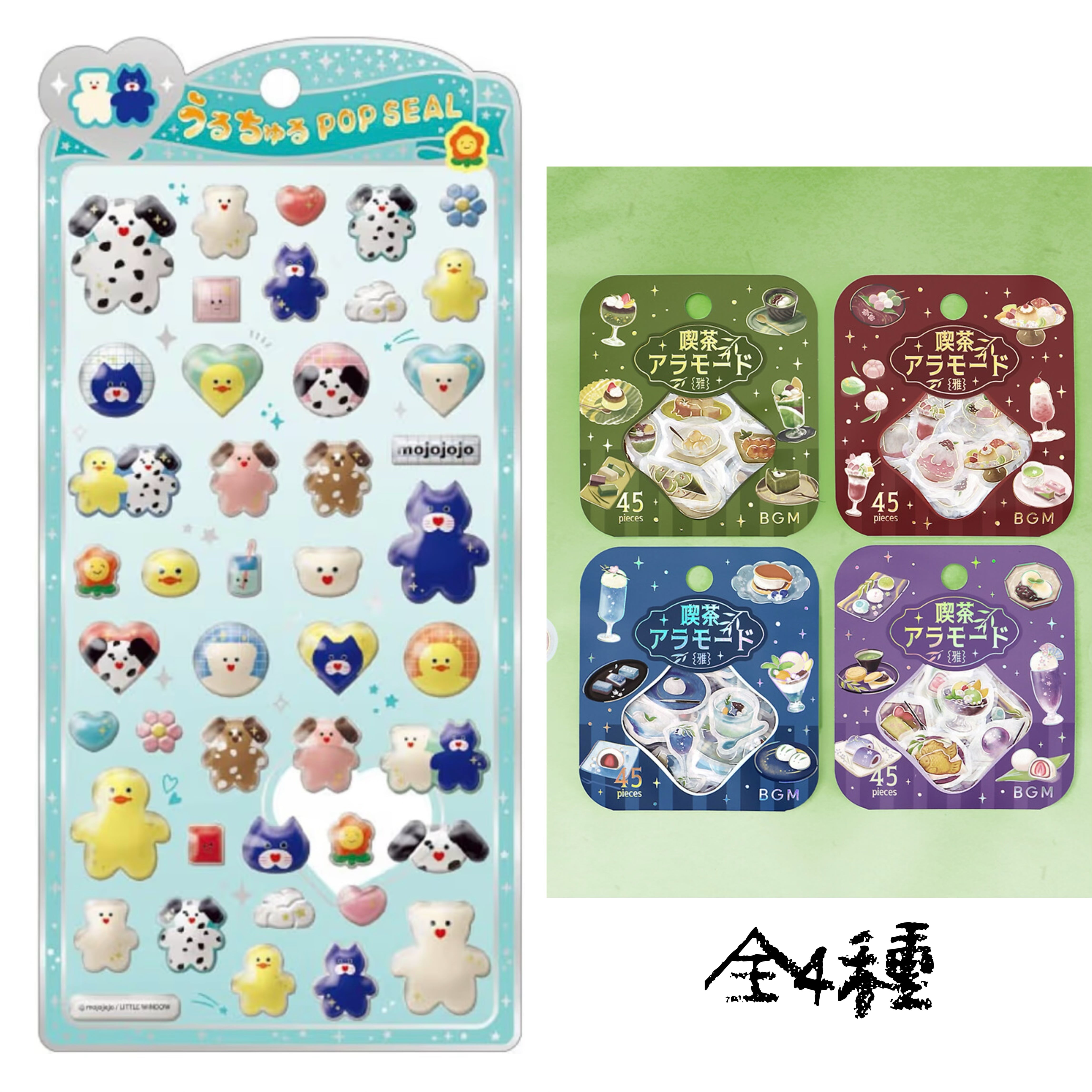 うるちゅるポップシール mojojojo(イラスト),喫茶アラモード・雅 フレークシール全4種セット