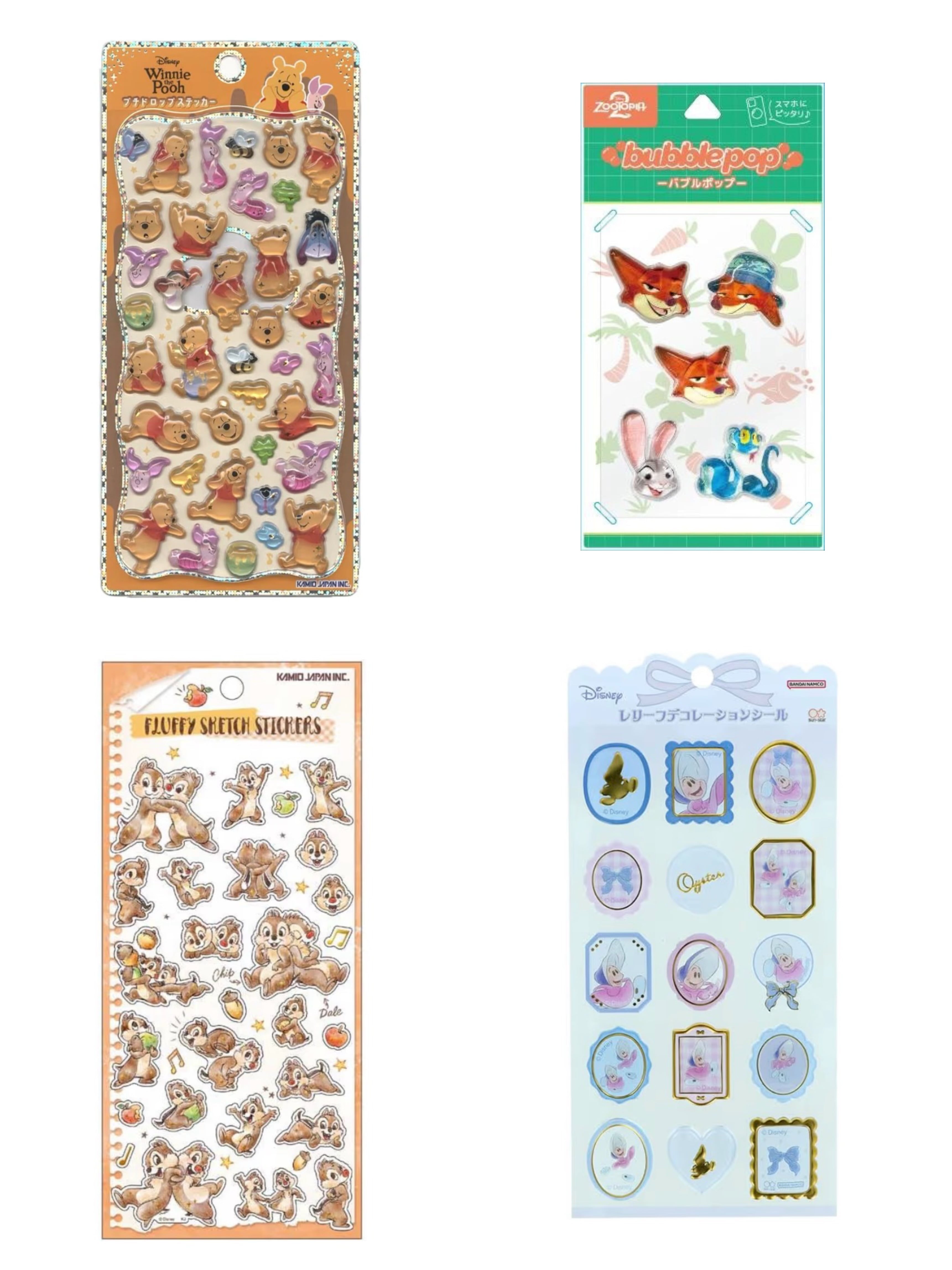 ディズニーセット(くまのプーさんプチドロップステッカー,ズートピア2バブルポップ,ヤングオイスターデコレーションシール,チップ&デールフラッフィースケッチステッカーズ